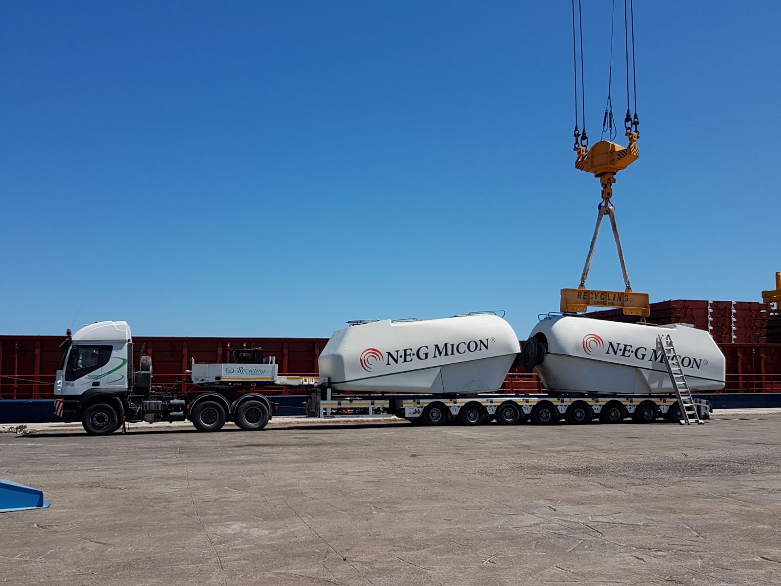 La Recycling è specializzata nella gestione dei “Trasporti Eccezzionali”. L’azienda infatti è dotata di mezzi capaci di trasportare a pieno carico fino a 100 tonnellate di merce in convogli lunghi fino a 60 metri con 38 metri di base d’appoggio.